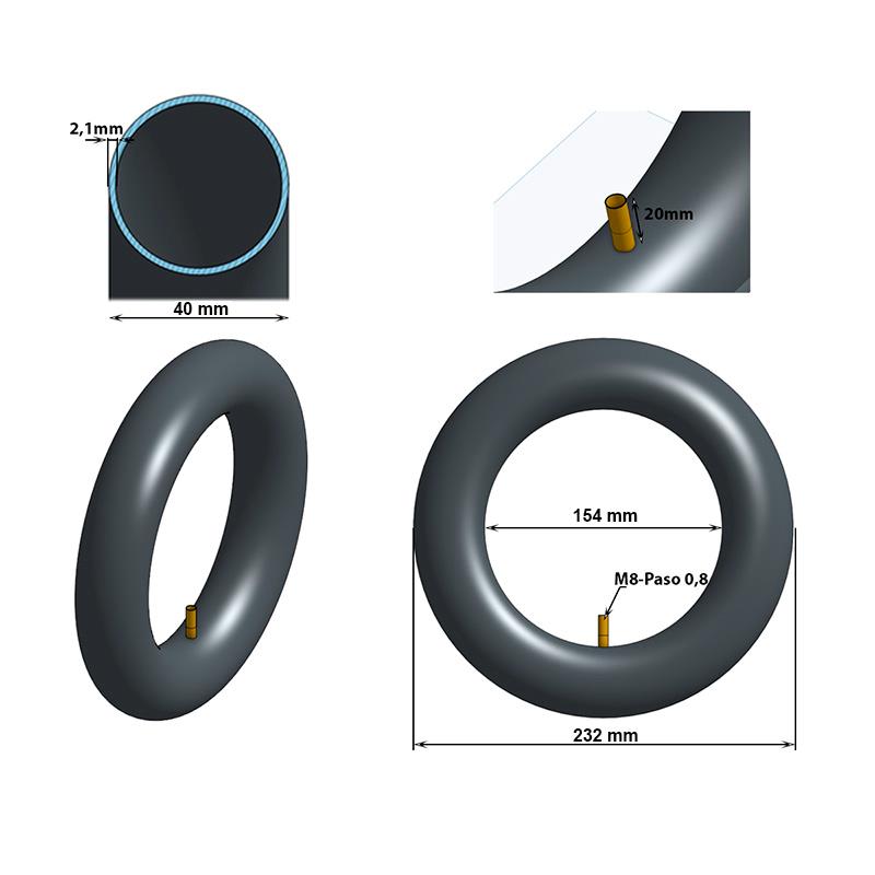Maße: 10 x 2,125 Zoll mit geradem Ventil. Entwickelt für optimale und lang anhaltende Leistung, wodurch der Wartungsaufwand des Rollers reduziert wird. Der maximal empfohlene Druck für die Kammer beträgt 4 kg und der empfohlene Druck ist der vom Reifen vorgegebene: zwischen 2,8 und 3,5 kg.
