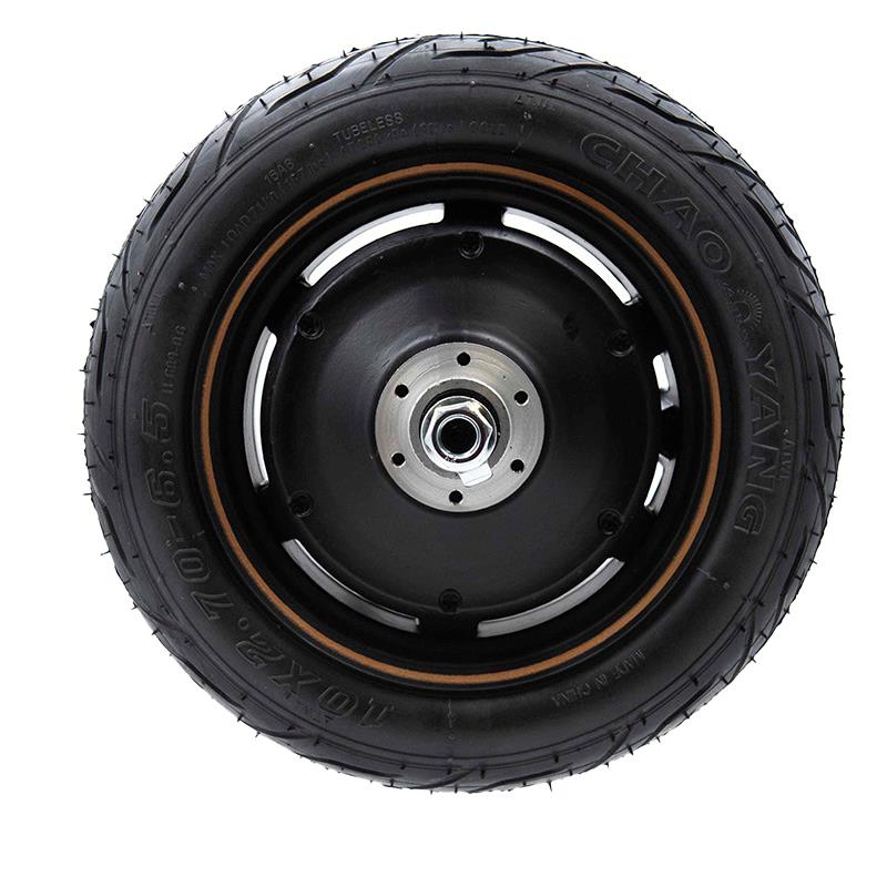 Dieser bürstenlose Motor ist für seine Effizienz und Langlebigkeit bekannt, was mehr Geschwindigkeit und Leistung für Ihre Fahrten bedeutet. Es bietet Ihnen ein aufregendes und effizientes Fahrerlebnis. Egal, ob Sie einen Ersatz benötigen oder Ihren aktuellen Roller aufrüsten möchten, dieser Motor ist eine großartige Wahl. Die Installation ist einfach und im Handumdrehen können Sie sich an einem leistungsstarken Elektroroller erfreuen. Enthält einen schlauchlosen Reifen der Marke Chaoyang in der Größe 10×2,7–6,5.
