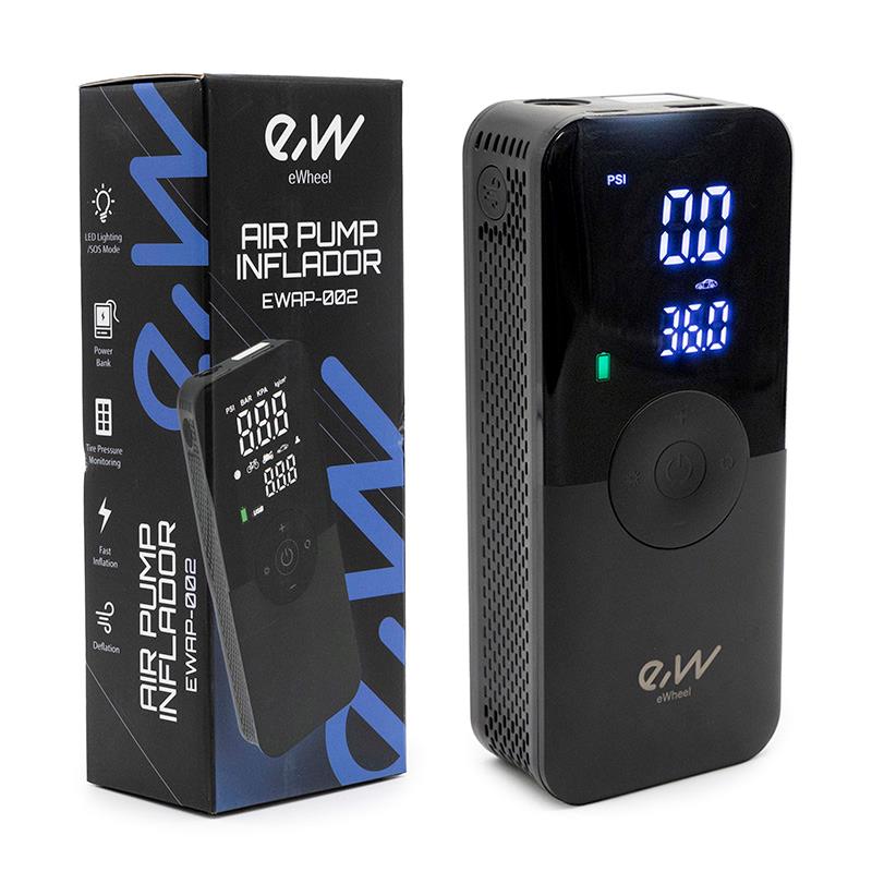 Die Premium-Elektropumpe Ewheel EWAP-002 ist die perfekte Lösung für alle, die Leistung, Präzision und Komfort in einem tragbaren Gerät suchen. Seine fortschrittlichen Spezifikationen, wie etwa ein Maximaldruck von 150 psi, 20 Minuten Dauerbetrieb und eine langlebige Batterie, machen ihn zu einem unverzichtbaren Inflator für jede Situation.
