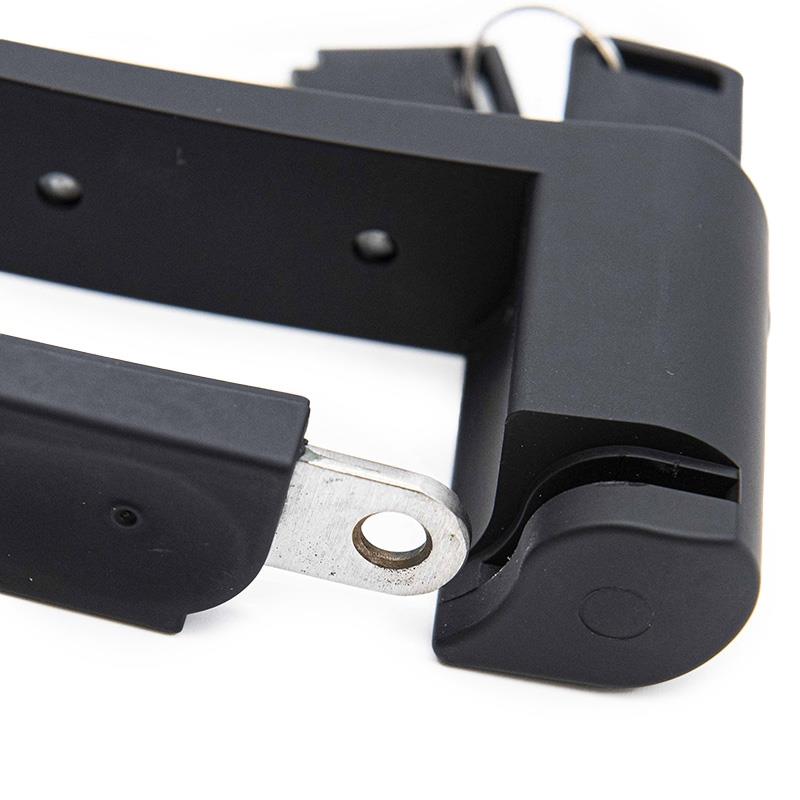 Sehr starkes Vorhängeschloss aus Edelstahl und widerstandsfähig gegen hydraulische Scheren von bis zu 12 Tonnen. Es ist mit allen Arten von Rollern und Fahrrädern kompatibel.