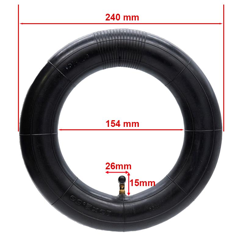 Maße: 10 x 2,5 Zoll. Mit 90º gebogenem Ventil. Entwickelt für optimale und lang anhaltende Leistung, wodurch der Wartungsaufwand für den Roller reduziert wird. Der maximal empfohlene Druck für die Kammer beträgt 4 kg, und der auf dem Reifen angegebene Druck wird empfohlen: zwischen 2,8 und 3,5 kg.
